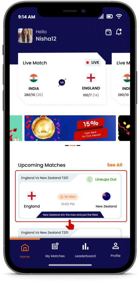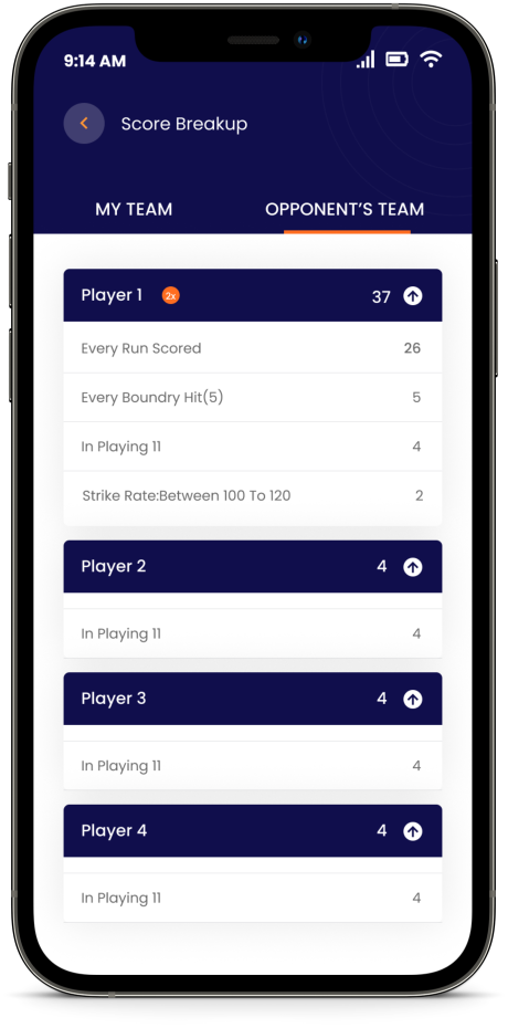 The most unique part about h2h fantasy Fantasy game is that here you can create your team with just 2 or 3 or 4 Players. No Credit Limits, No Player Type Limits, just choose the players you think will do well for you in a game and start challenging others and win money.For those who love the 11-player Fantasy Game, the 11-player Fantasy mode is also LIVE on the app. Please download the latest version of the app to play 11-player Fantasy.