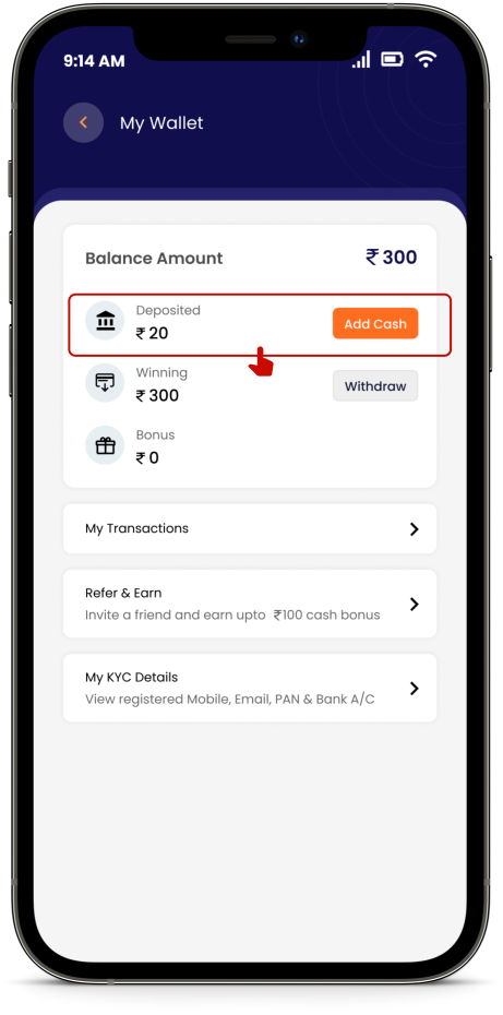 Example: If you are a first time user and are creating or accepting a ₹25 challenge or joining a ₹25 contest on h2h fantasy app, you can use ₹5 from your Bonus Wallet and only spend ₹20 from your Deposited Wallet.